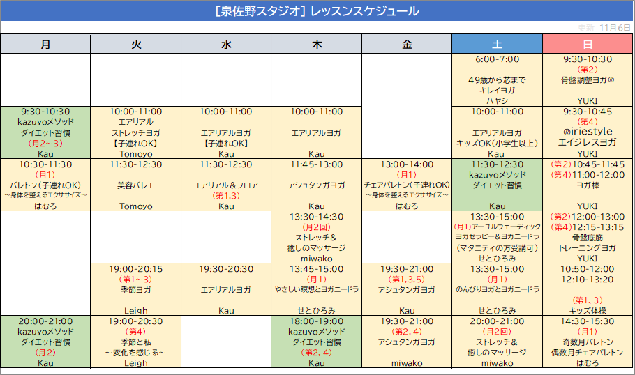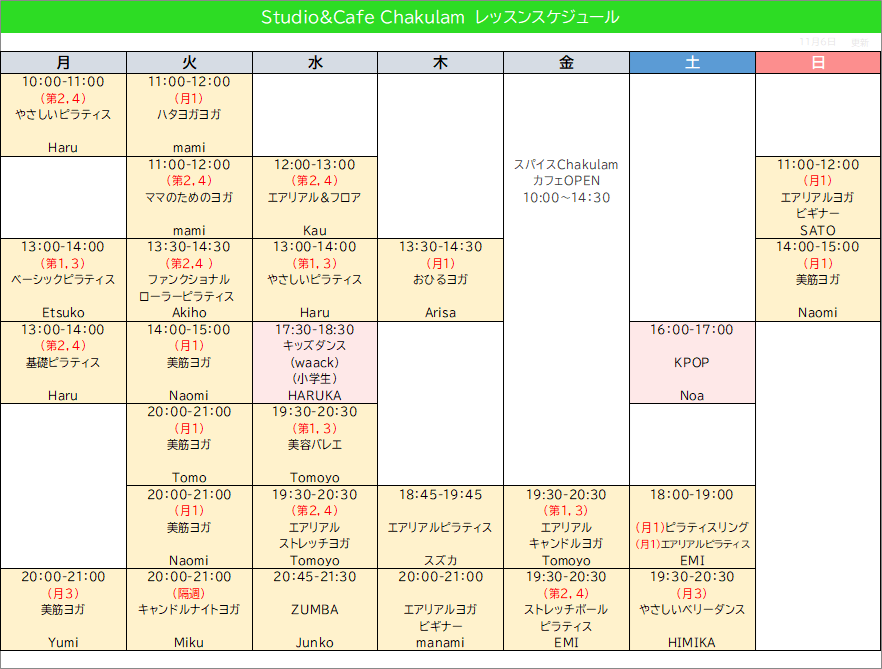 Studio & Cafe Chakulam(上瓦屋) スケジュール